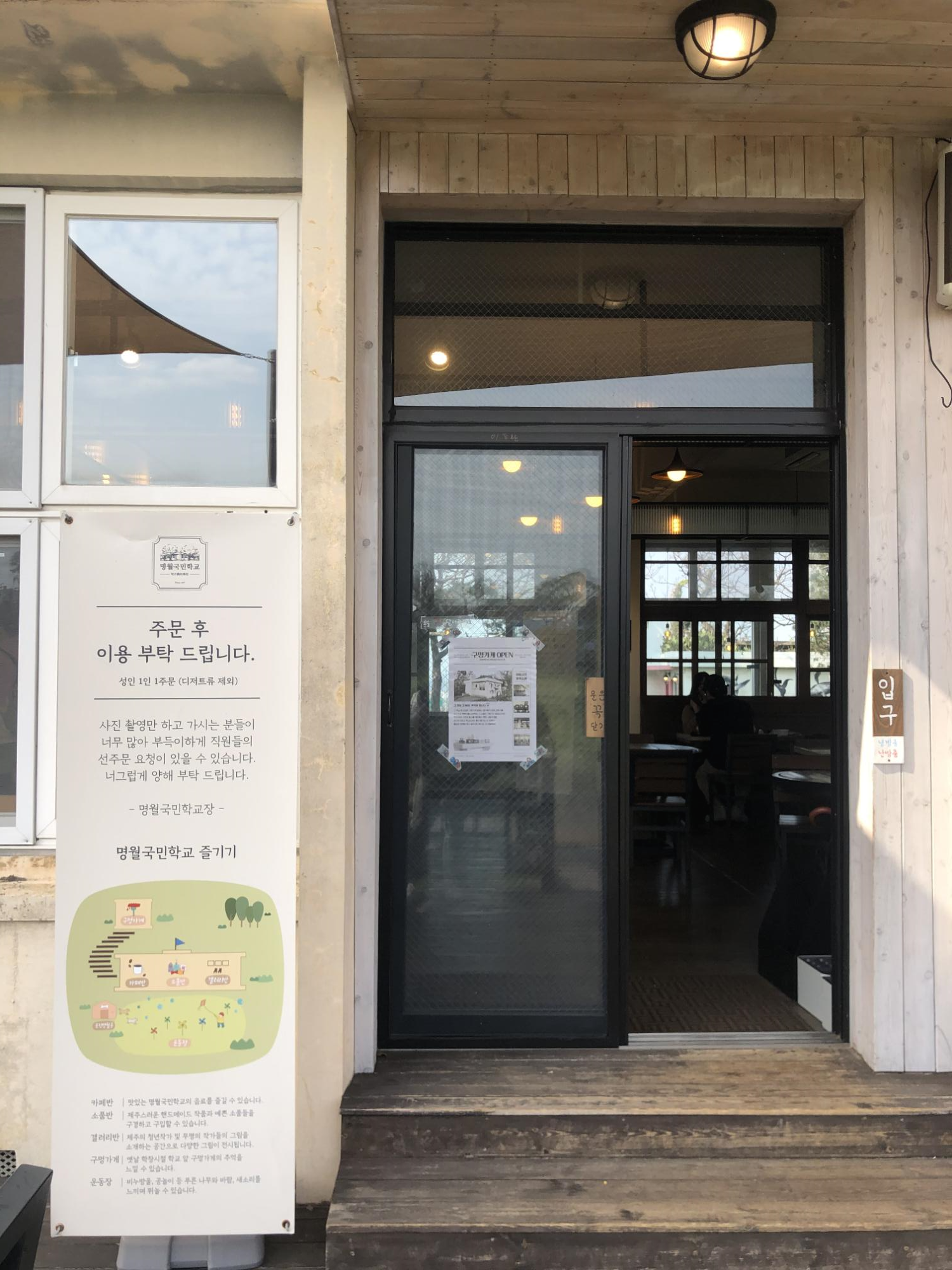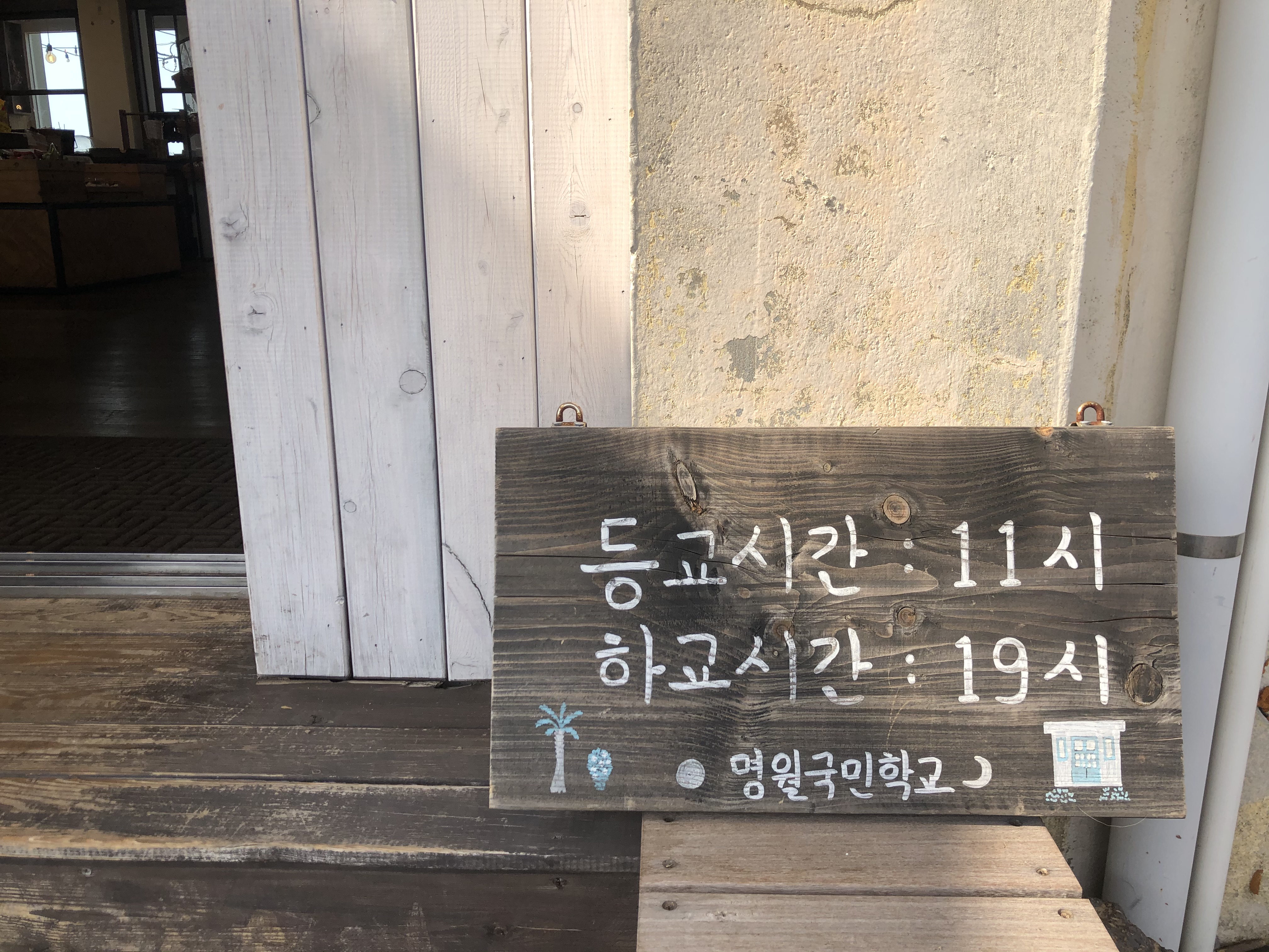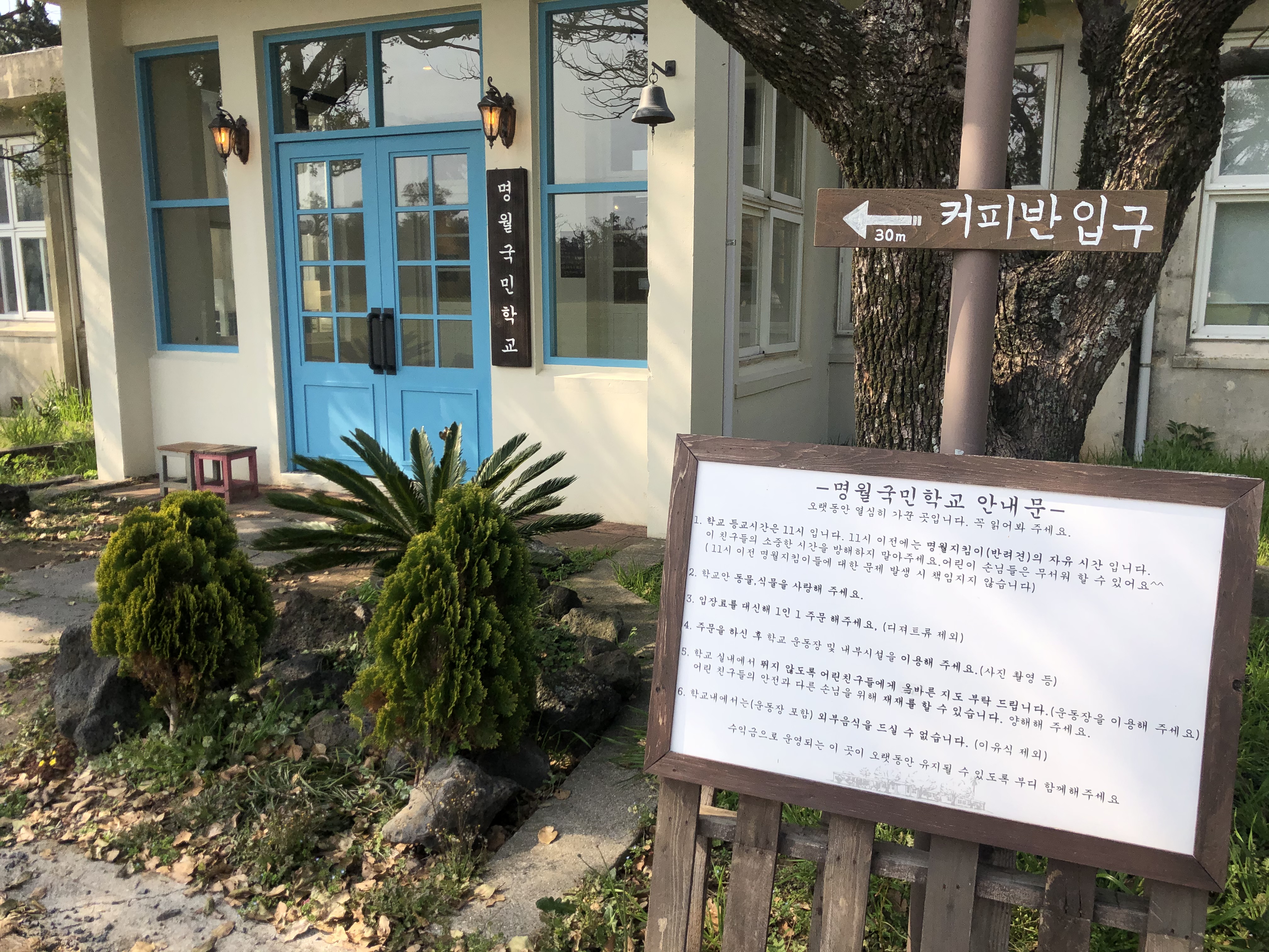 학교로 들어갈 수 있는 좁은 입구에 작은 간판이 있었다