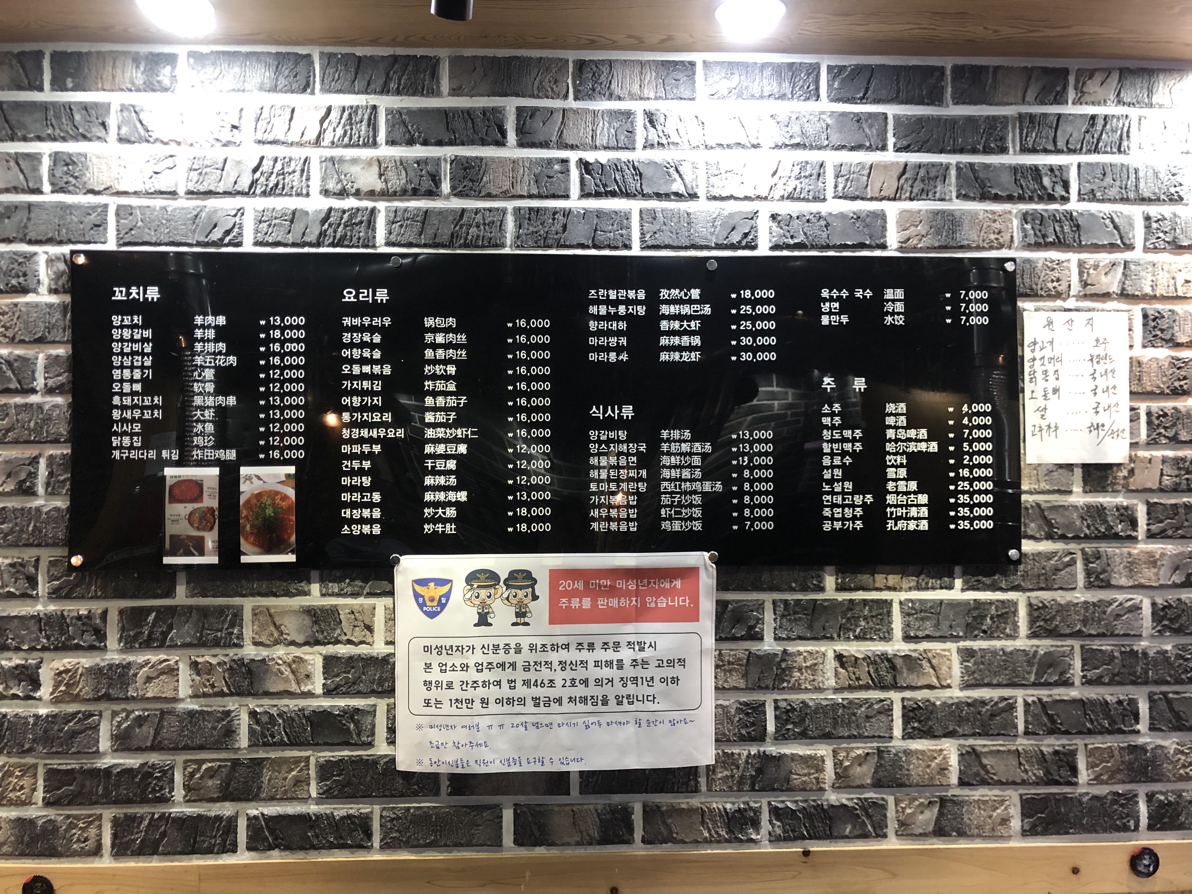 예상했던 것처럼 양꼬치외에도 중국본토 식당에서나