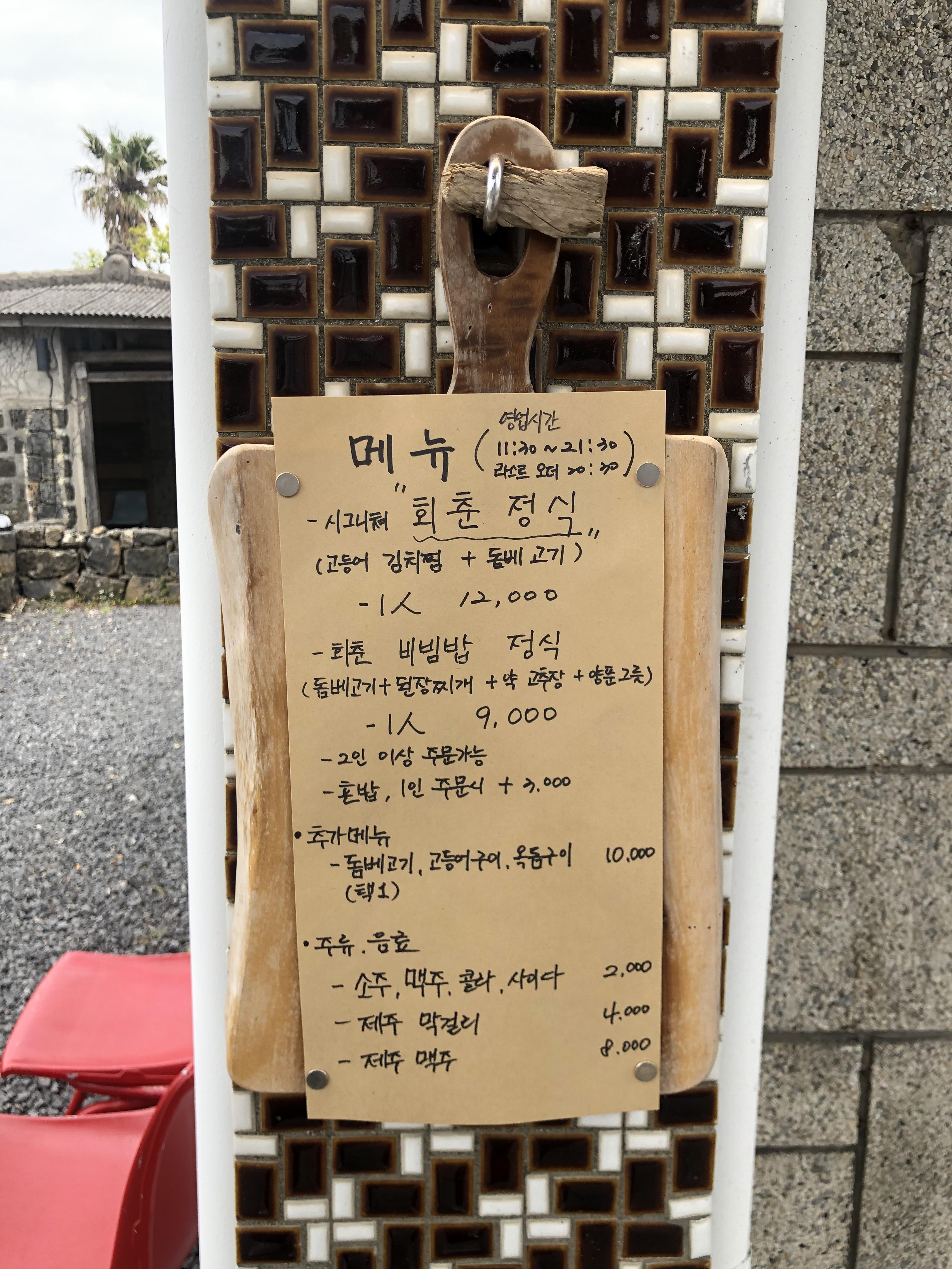 마침내 자리에 앉아 받아든 메뉴판